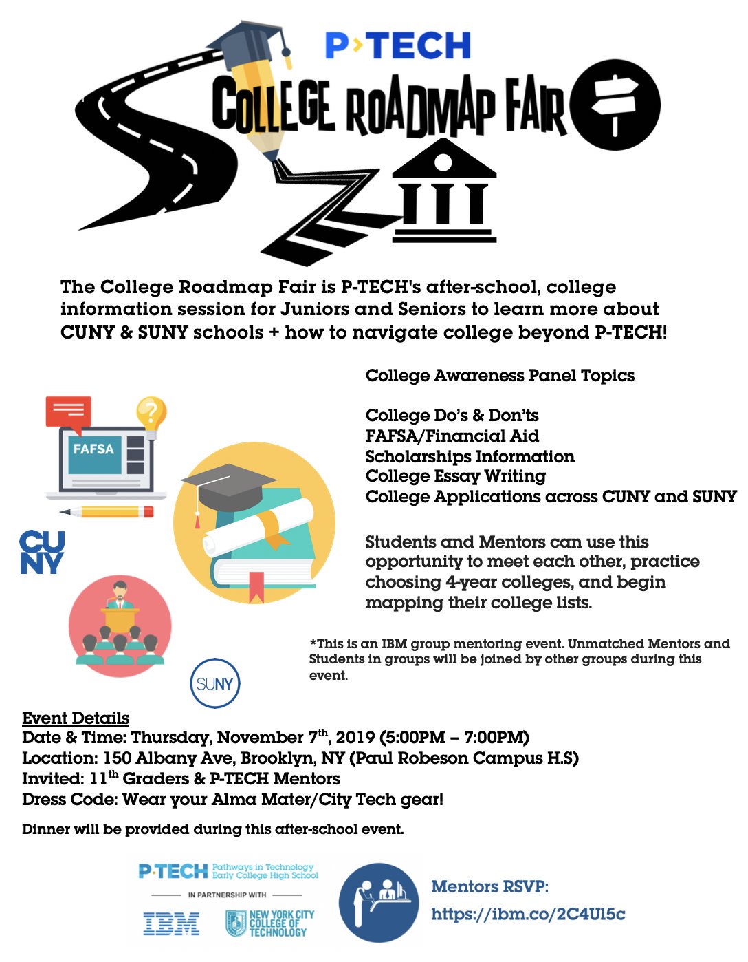 P Tech Brooklyn On Twitter Tomorrow Ptechnetwork The 2019 College Roadmap Fair Our Event For Juniors Seniors Mentors To Explore Different College Avenues Opportunities And Next Steps Before Graduation Year We